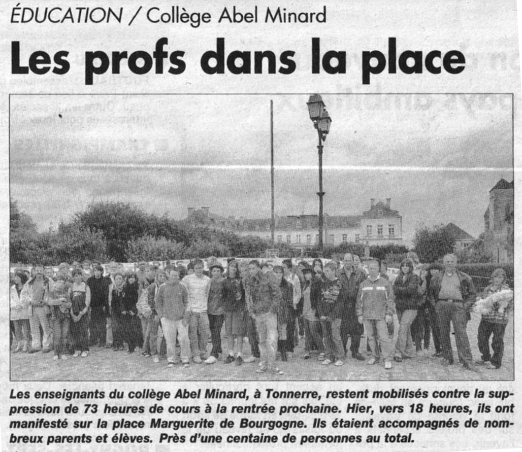 Le vendredi 6 juin, après 7 semaines de lutte et 12 nuits d’occupation, plusieurs grèves et une journée « collège mort » organisée par les fédérations de parents, personnels du collège, parents et élèves ont manifesté à Tonnerre, bloquant le centre ville pendant plus d’une heure.