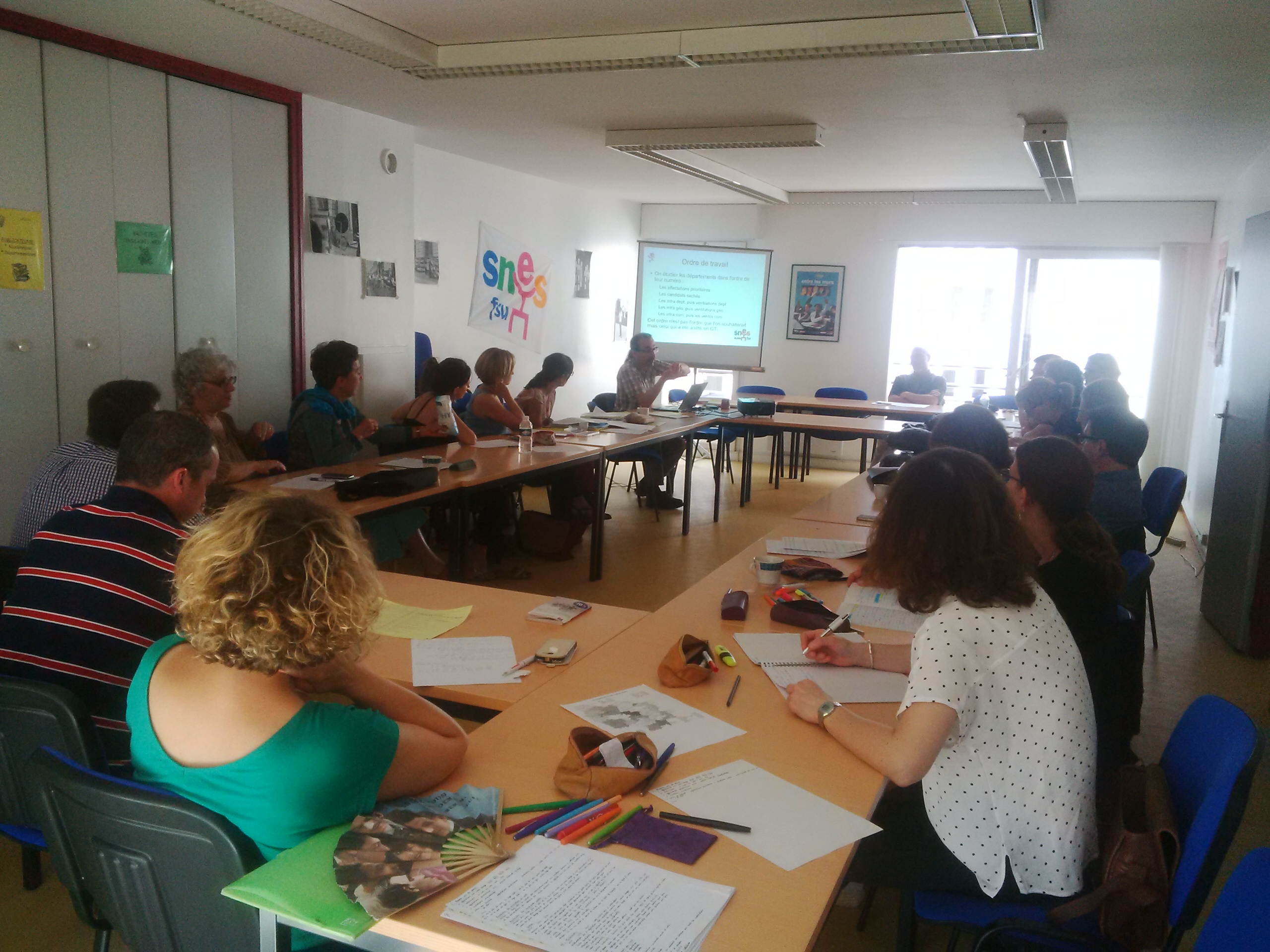 Les commissaires paritaires du SNES-FSU ont commencé à travailler le mardi 7 juin. Tout d’abord des révisions avec le professeur Crouzet : classe attentive !