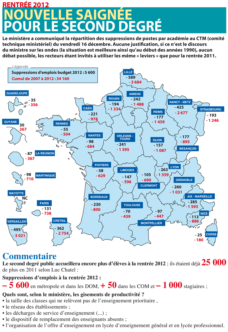 Selon les documents préparatoires au Comité Technique Académique, l’augmentation du nombre d’élèves se traduit une nouvelle fois par une diminution du nombre de postes.
